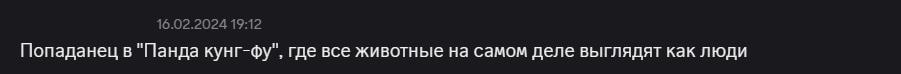 Поясняю более внятно: Тай Лунг, в которого попал мой главный герой НЕ такой же Тай Лунг, которого описывают другие писатели, мой сюжет НЕ такой же как в работах других писателей, мои идеи НЕ такие же как в работах других писателей. Ты берёшь факт того что попаданец именно в Тай Лунга и просто откидываешь тот факт, что ВООБЩЕ, БЛЯТЬ, ВСЁ КРОМЕ ЭТОГО ОРИГИНАЛЬНАЯ РАБОТА. Спасибо за внимание ;)