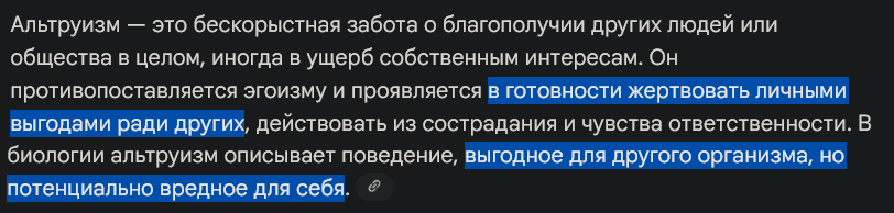 Альтруистами? Когда ты кидаешь нищему копейку ты автоматически становишься альтруистом?