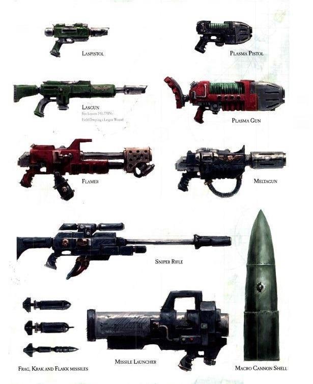 По моим соображениям от массивности оружия с уроном до лёгкости и продолжительности огня по средней армированном и ниже: