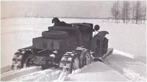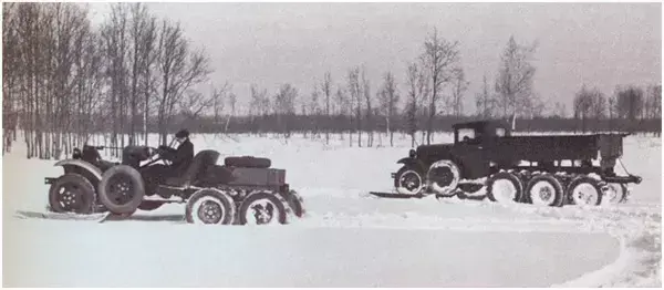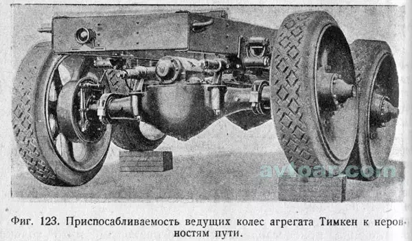 фирма "Тимкен" вместо одного заднего ведущего моста устанавливала тележку из двух мостов, соединённых между собой цепной передачей