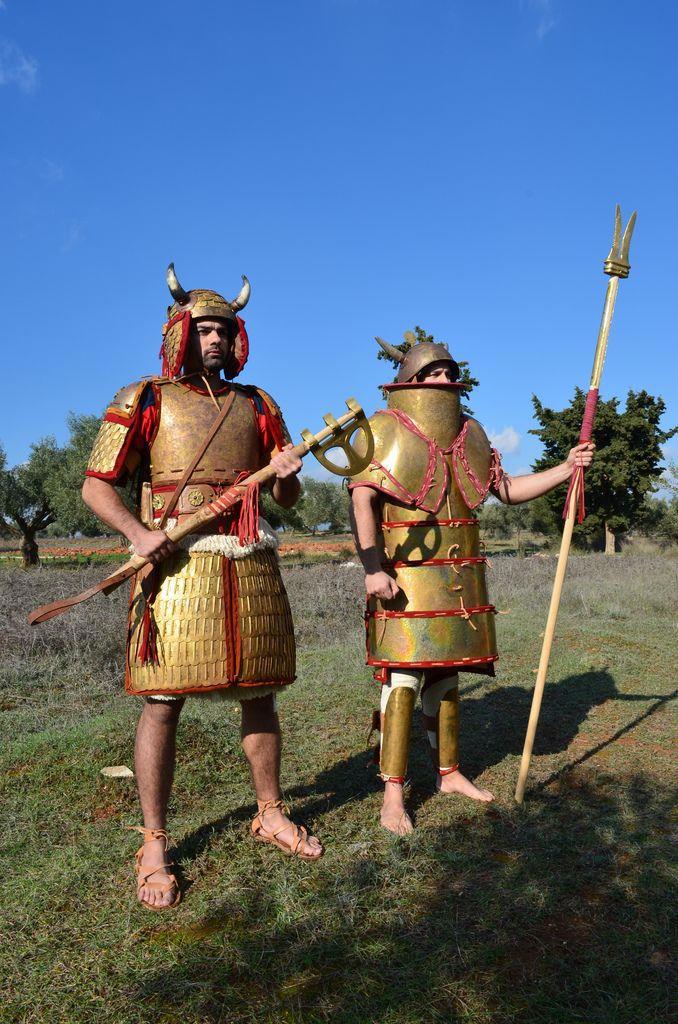 С топором вполне сгодится и для менелайцев, и для их врагов. С вилкой это очередная вариация "доспеха колесничего", на наш период антиквариат.