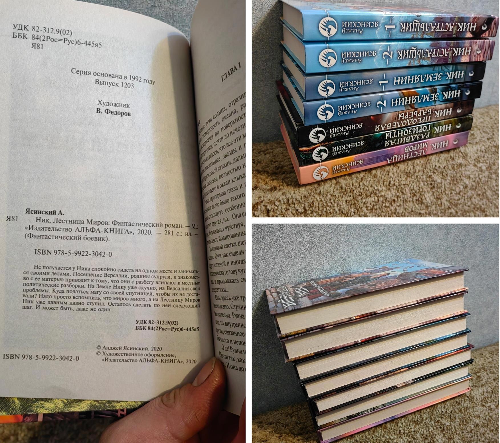 Очень хочется собрать полную серию, но пока в коллекции только 4 книги. Остальное читал в библиотеке Новосибирска, собственно там с первой книгой и познакомился. Одна из любимейших серий. Особенно нравится периодически смена локаций в серии, и это воспринимается как другая история со знакомыми героями. А от продуманности структуры магии и мира в целом до сих пор в восторге. И невероятно жаль Крис, просто оборвали романтическую линию. Я так надеялся что в конце встретятся, а тут инопрешеленку добавили, это была трагедия века. И до сих пор жду истории про дочь, про Скалла (надеюсь имя не перевал, давно читал). Там такой простор для творчества на базе этой вселенной, даже удивительно что после Ника у вас только две книги. Побежал искать недостающие книги в бумаге. Успехов в творчестве!