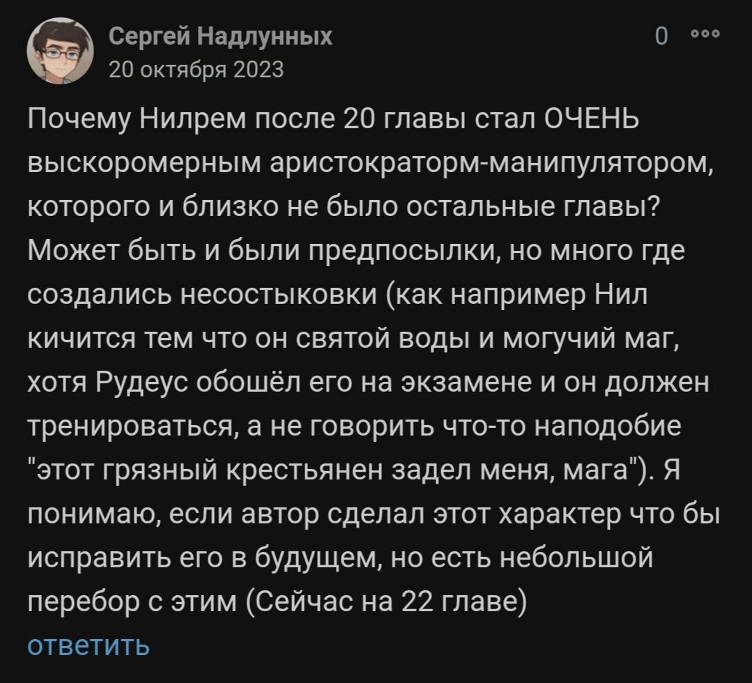 Привет. 10 месяцев я жду ответа на свой комментарий... Не помню, из-за чего дропнул на 50+ главах, но сейчас хочу перечитать. Не подскажите, ГГ исправился?
