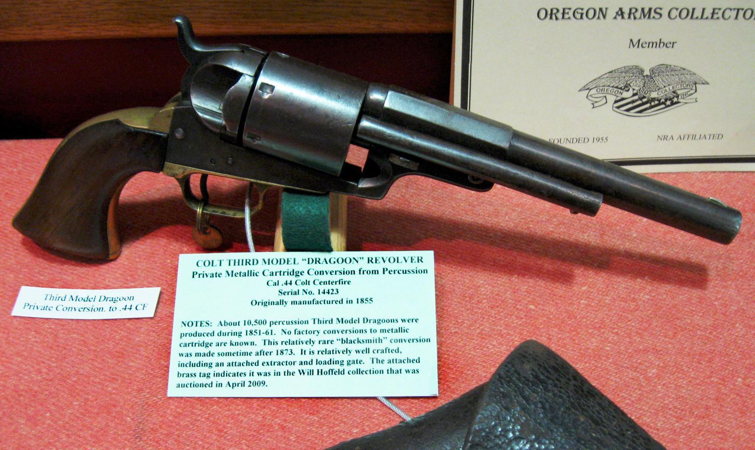 Драгун 3й-й модели конверсия под унитарный патрон центрального воспламенения. отличительная черта - окно зарядки справа и выбрасыватель, так-же справа. Ну и отсутствие рычага для "забивки" пули.