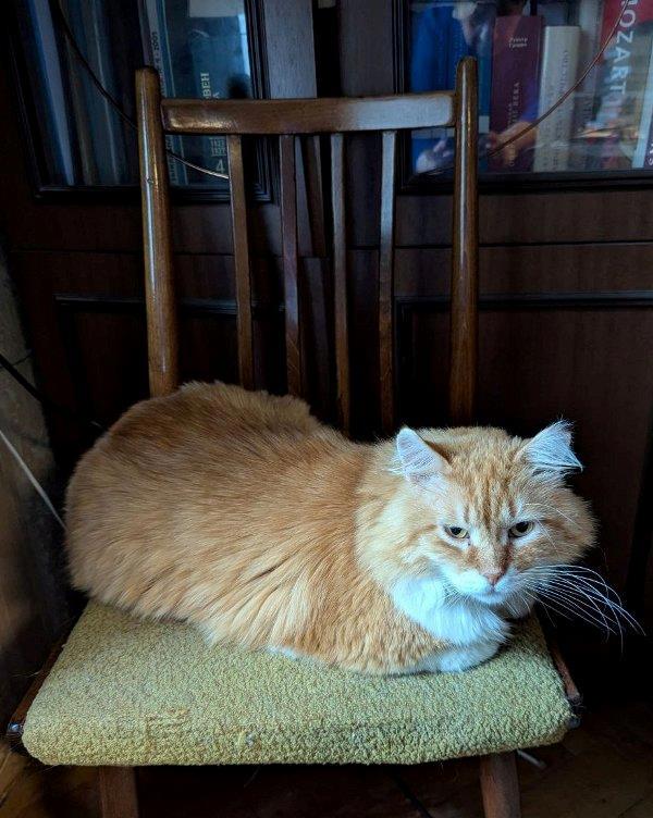 Заматерел! Раздобрел! Но прыгучесть снизилась. На стул может. На стол или шкаф - нет. Зато ничего не роняет и не сбрасывает. Идеальный профессорский кот.