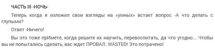 Автор, по главе "Умный или глупый?" - возможна такая позиция: все люди дураки/дерьмо/глупцы (и т.п.), но можно дать им шанс доказать/показать неверность такого утверждения