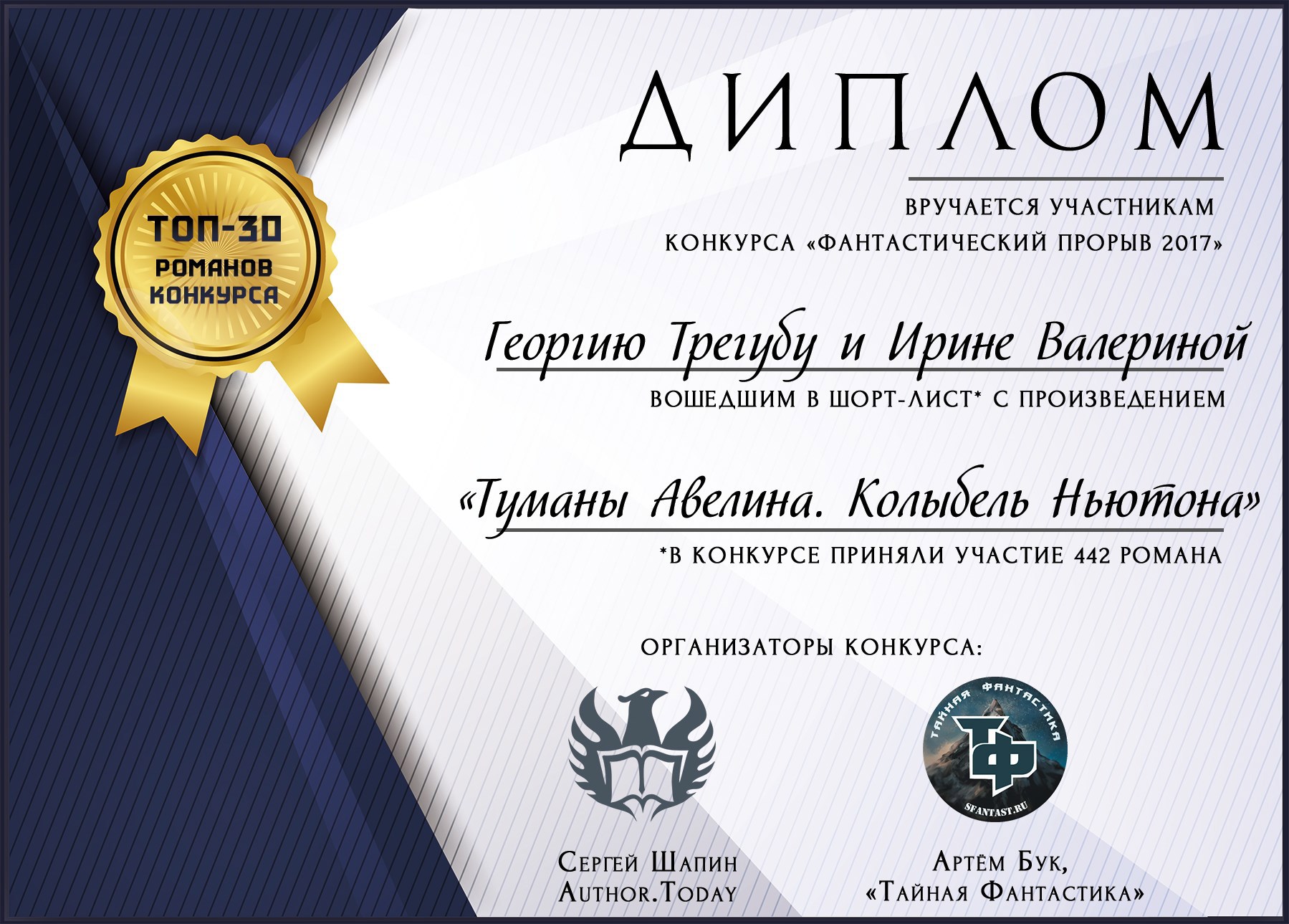 Выдается всем участникам конкурса романов «Фантастический прорыв 2017»