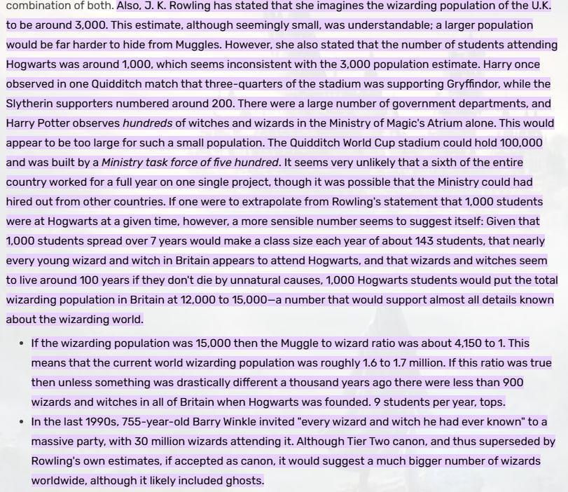 Можешь даже не пытаться понять количество населения магов ГП: на эту тему споры ведутся десятилетиями. Та самая статья из "Пророка" существует только как реквизит фильма "Философский камень", то есть это чисто фильмовый канон первых двух фильмов. В книгах не говорится про численность магов, но, по самым оптимистичным прикидкам, выходит около 1 мага на 500 000 немагов(10 000 на Британию), а в чуть более адекватных, но оптимистичных подсчётах получается около 1 мага на 1 000 000 немагов(5 000 на Британию). Опять же, повторюсь, официальных цифр не существует, только подсчёты косвенной инфы фанатами. Так что это не ляп, а видение автора на данную ситуацию.