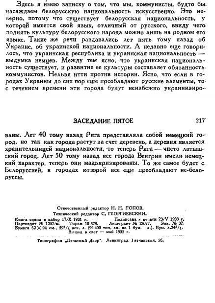 Вы просто не охватываете картину. Бывает, но фактам и документам не возразишь, и тут скорее никто возражать не станет, а бандерлоги минусов молчком накидают и утрутся. Это же сканы протокола 10 съезда РКП(б), но были другие съезды - просто читаем протокол и все понятно. К примеру, на 12 съезде РКП(б) весной 1923 года Сталин протолкнул выработку русофобской политики "коренизации", смысл и содержание которой состоял в дерусификации в республиках СССР и положительной дискриминации русского народа как такового в пользу меньшинств и окраин. А принудительная украинизация, которая и сформировала тепличные условия бандеровщины, была частным случаем этой политики, которую далее называли "ленинской национальной политикой" и реализовывали до последнего дня КПСС и СССР и по инерции даже после СССР.