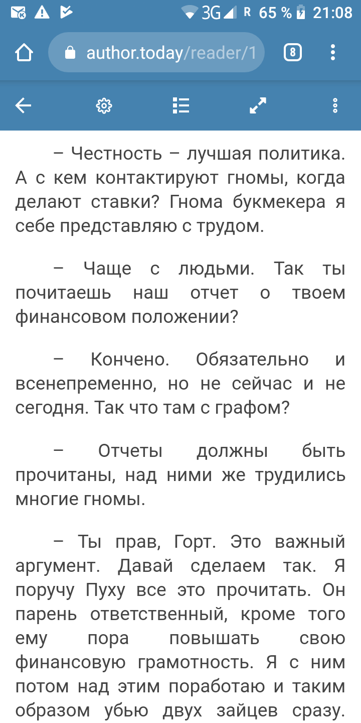 4 дня? Это они по строчке в час читают? Мне на день не хватает, и это я ещё на работе в перерывах время уделяю. Скорее бы можно было купить полную версию и спокойно прочесть)