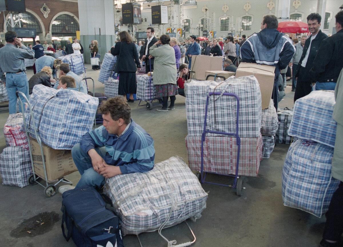счастливый человек!Он не знает кто такой челнок))Это целая эпоха жизни после развала СССР,90% населения занималось торговлей,катались либо между МСК и остальными городами страны,много ездили в Польшу,Турцию,Эмираты.Выглядели они обычно так:
