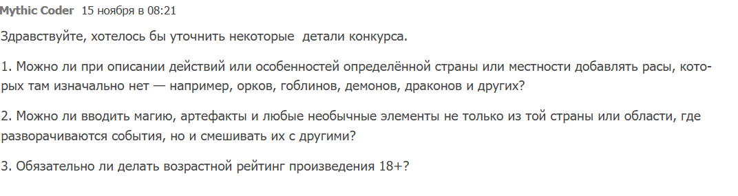 Есть правила - роман, однотомник. Пытаются всунуть сборники рассказов, романы из серии, под видом того, "ну типа сюжет отдельный и это "вбоквел". А если я перепишу роман которому 10 лет? И много чего. Люди понимают, что у них "не то пальто", но упрямо всовывают. Это меня, наверное, не возмущает, а удивляет, и да, я так не могу. Дмитрий, спасибо вам за большие и развёрнутые комментарии.