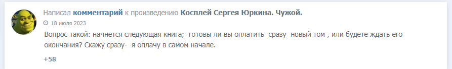 Вопрос такой: начнется следующая книга; готовы ли вы оплатить сразу новый том , или будете ждать его окончания? Скажу сразу- я оплачу в самом начале.