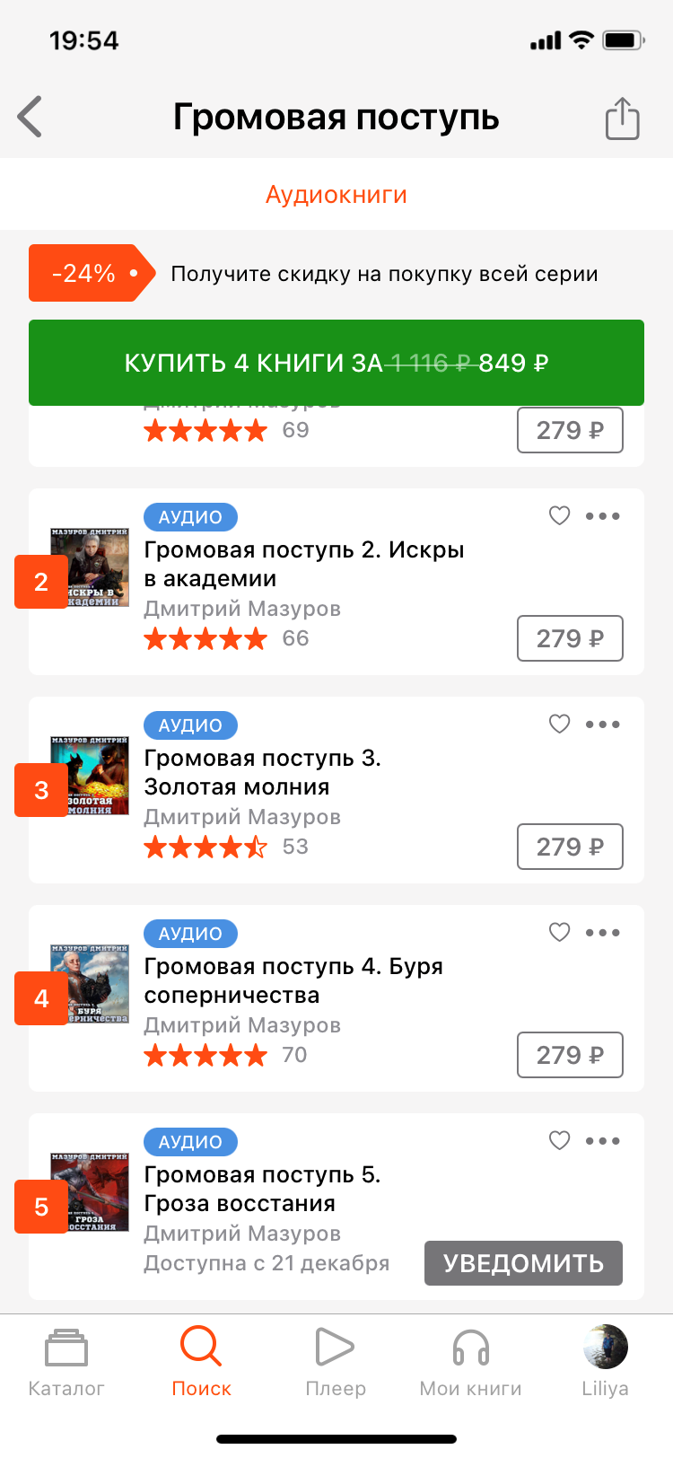 Сейчас смотрела на ЛитРес там начало продаж с 21 декабря и цены нет, хотя предыдущие серии стоят 279р