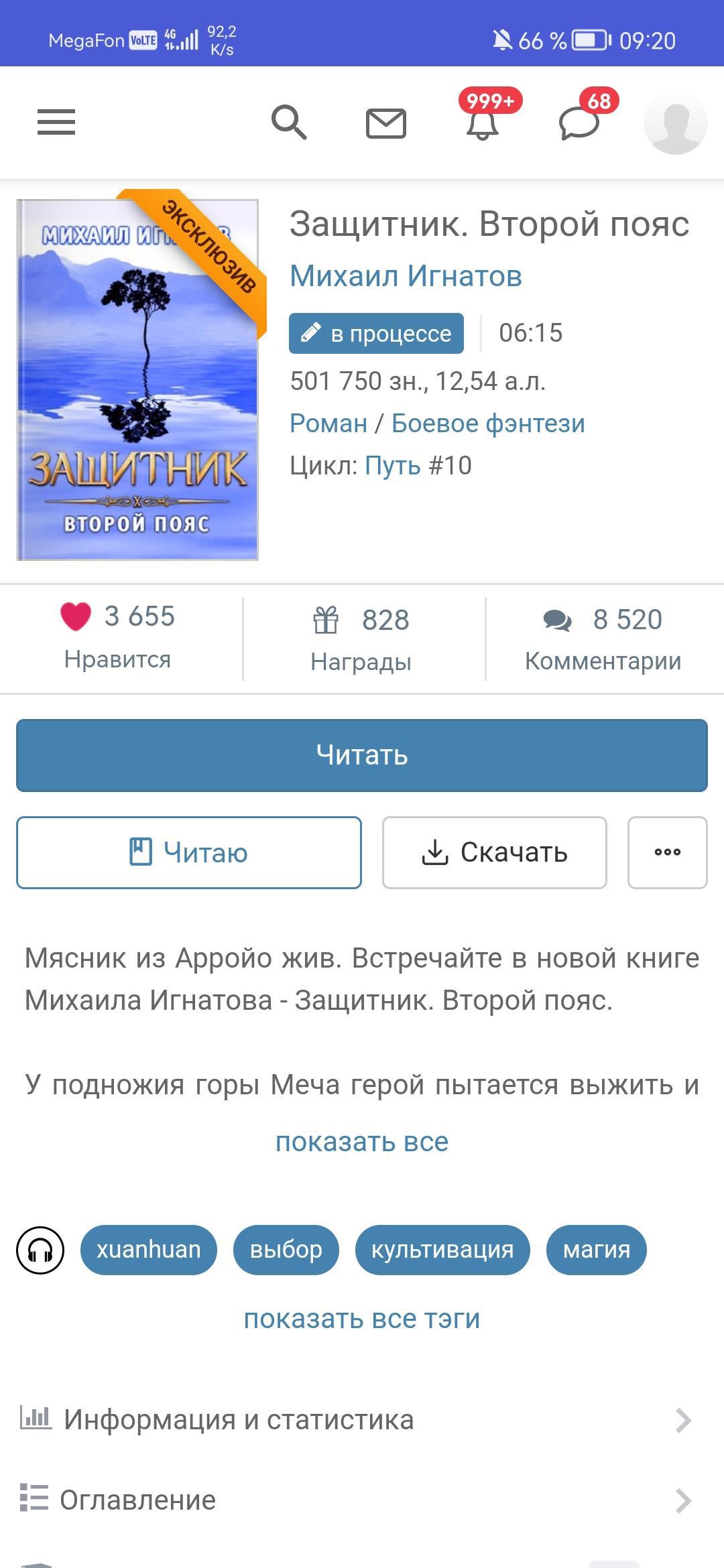 Блин, год не было на портале, что за страшные цифры уведомлений. Кстати, я ещё овладел техникой стихии Времени под названием ,, Поедание завершенных книг"