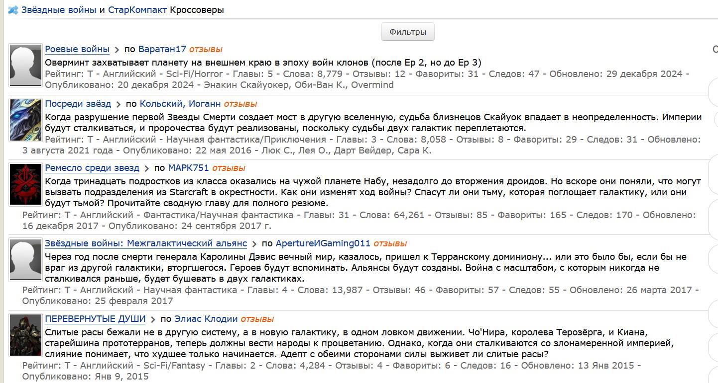 Я уже превзошел абсолютно все фанфики что есть по Звездным Война/СтарКрафт... на разных языках отличных от русского.