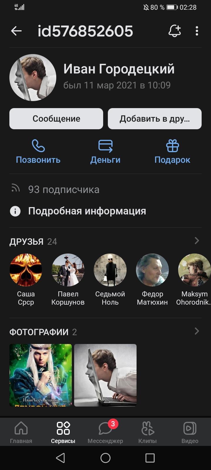 Зайди ему в профиль посмотри аву напиши в ВК его имя фамилию и увидишь