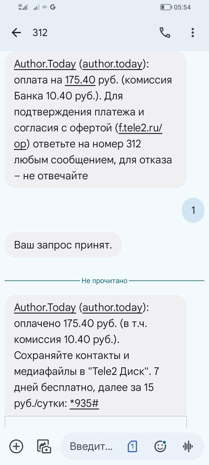 Утром внёс оплату, книга висит, как не оплачена. Продублировал. Ещё раз оплатил с номера Теле-2., т. е. внёс двойную оплату. Также висит как не оплаченная.