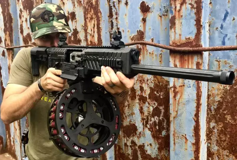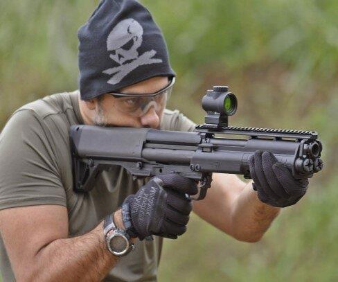 Как то сомнительно выглядит выбор Элей дробовика с барабанным магазином на 32 патрона. Ладно вес, (а там одни патроны под 2 кг будут весить), возможно Эля и с негатором та еще силачка, но как с такой бандурой верхом ехать и через заросли продираться?????? Я, будучи охотником и владельцем разных типов гладкоствольных ружей, этого представить не могу. Возможно ей бы лучше подошло что то типа Kel-Tec KSG. Надежная помпа с двумя подствольными магазинами по семь патронов каждый и возможностью выбора боеприпаса. А дозарядится, при сноровке, можно и в процессе боевого контакта.