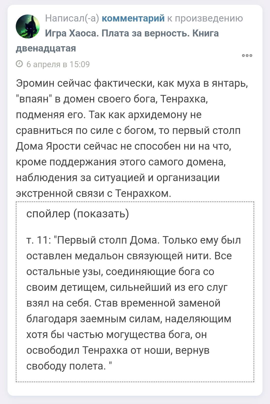 Написал комментарий к произведению Игра Хаоса. Книга Четырнадцатая.