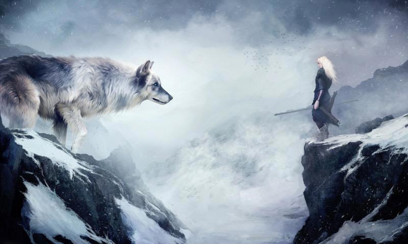 Я не представляю, как выглядят волки Тальрама. Должен быть какой-то гибрид земных волка и лошади. Способный нести на себе тело взрослого человека и сворачиваться пушистым клубочком (клубочек под 400 кг)