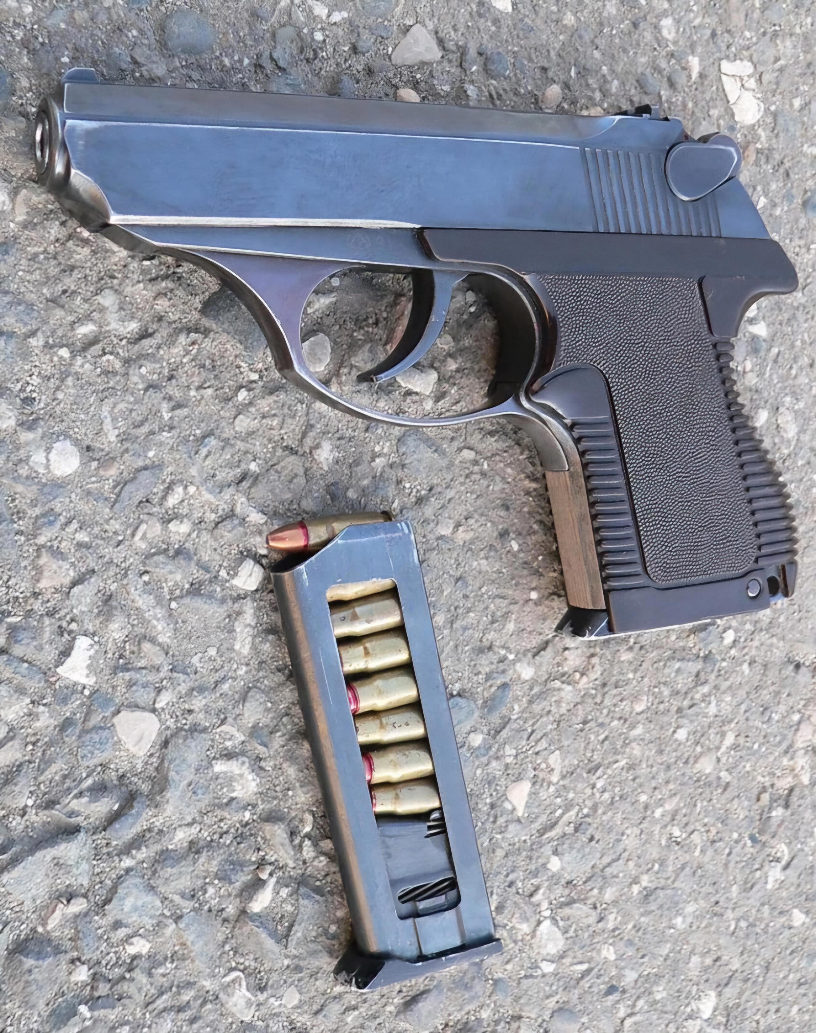 Но не ментовский, конечно. Ментовские - это ТТ, наганы, ПМ, ПСМ и прочие вальтеры.