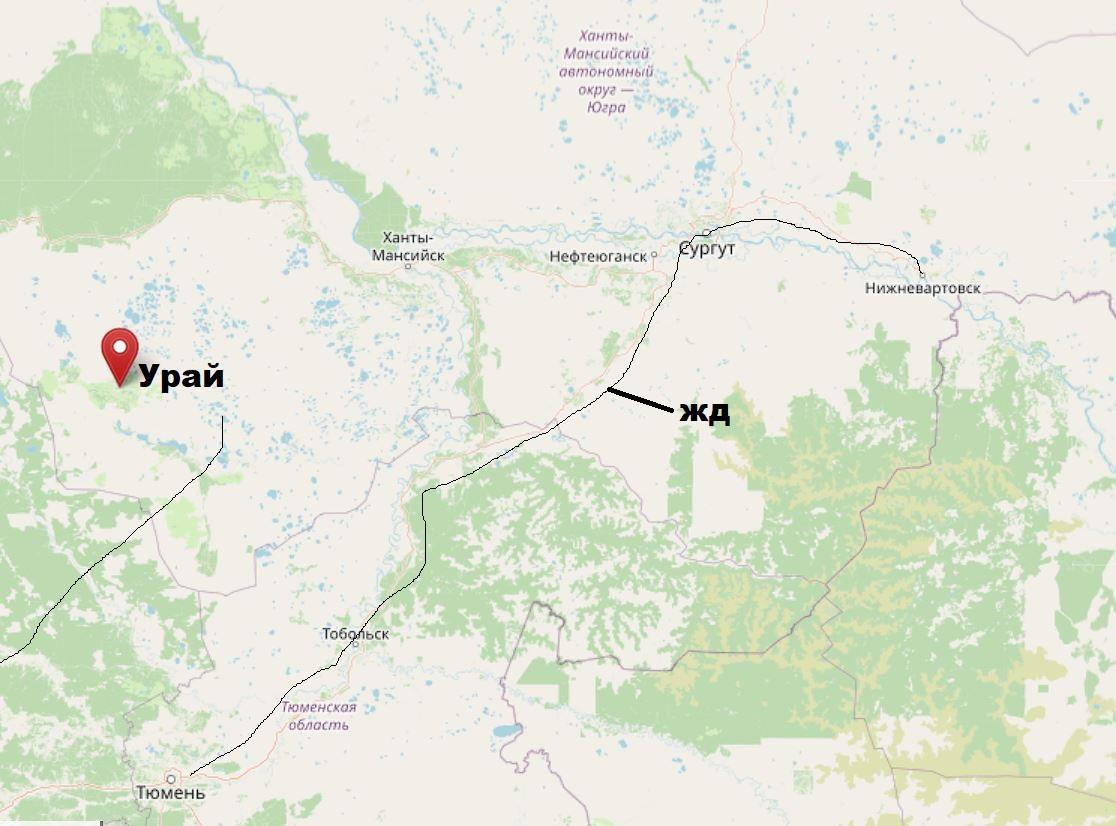 В Урае ЖД не было и нет и поныне. Ближайшая станция Междуреченский. эта ветка ЖД выходит на Свердловск.