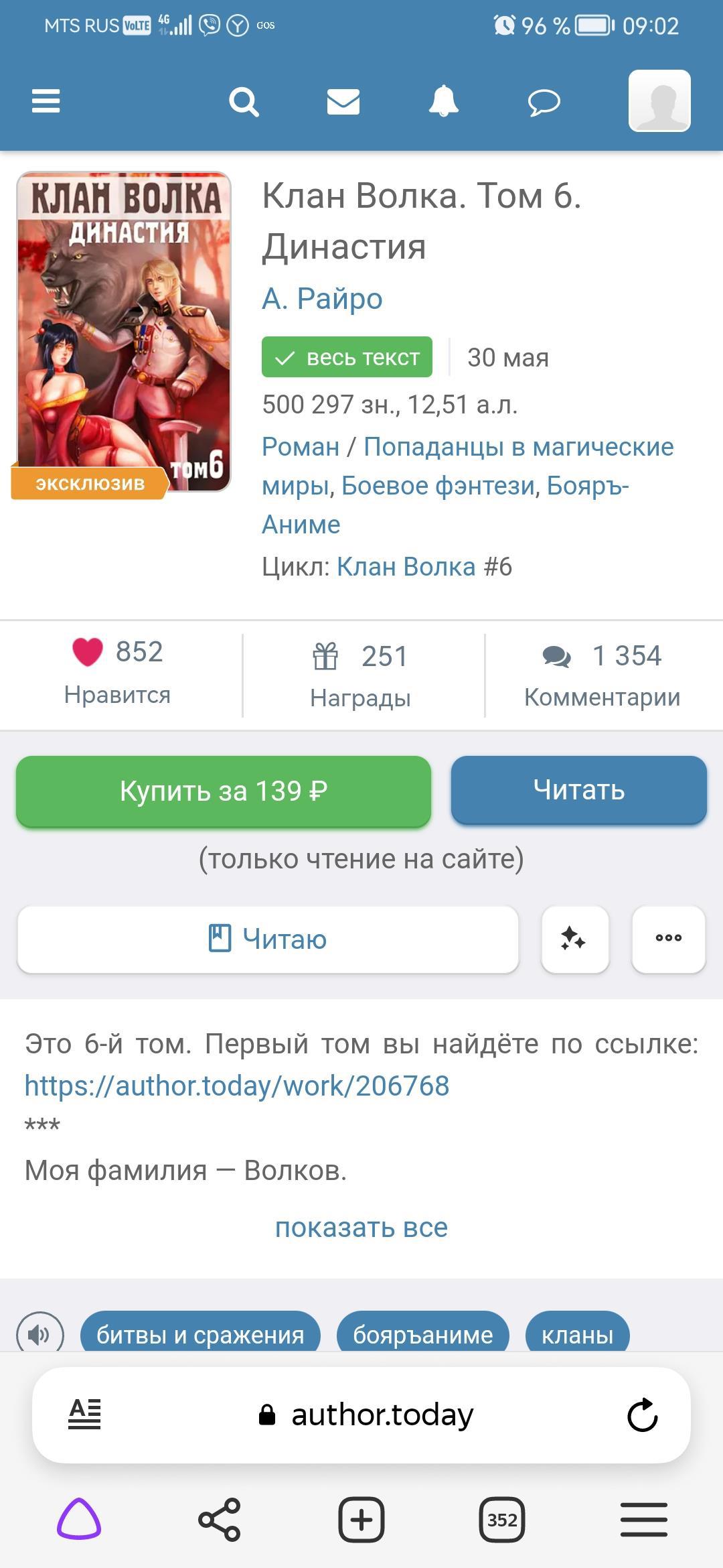 Написал(-a) комментарий к произведению Клан Волка. Том 6. Династия