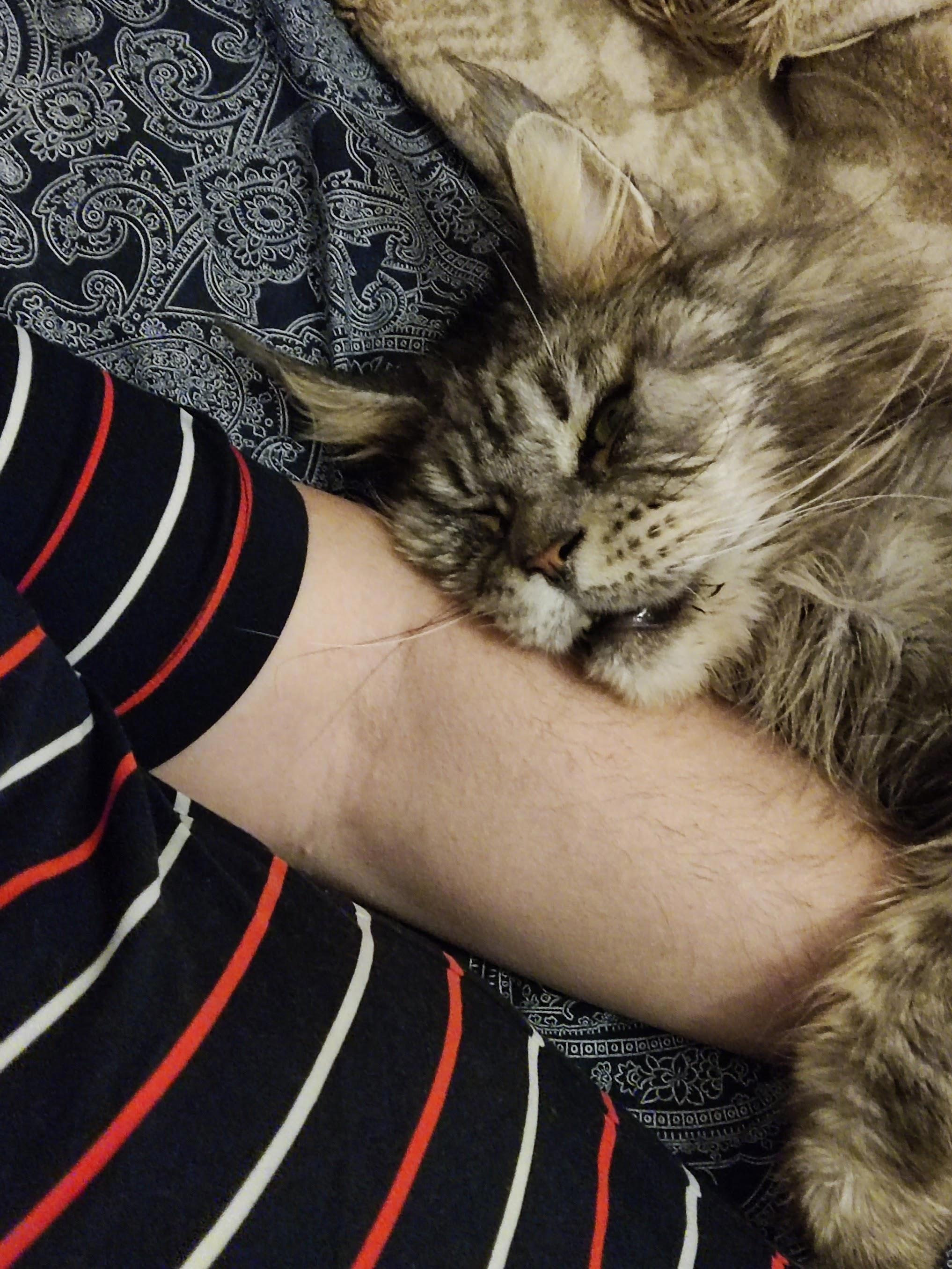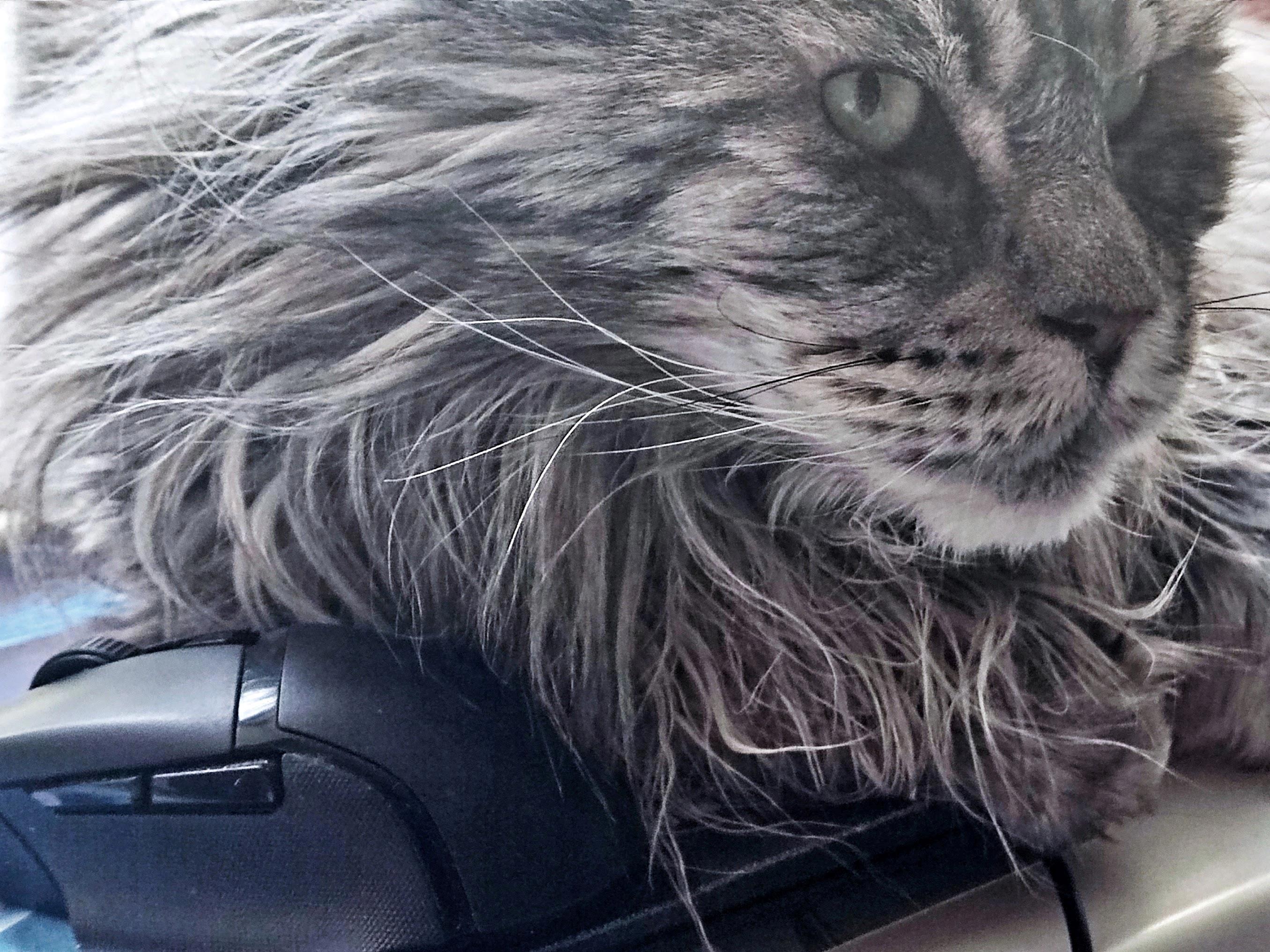 В прошлой жизни был собачником, а сейчас, уже 9 лет у нас огромный Мейн-кун, умный, хитрый, любопытный.