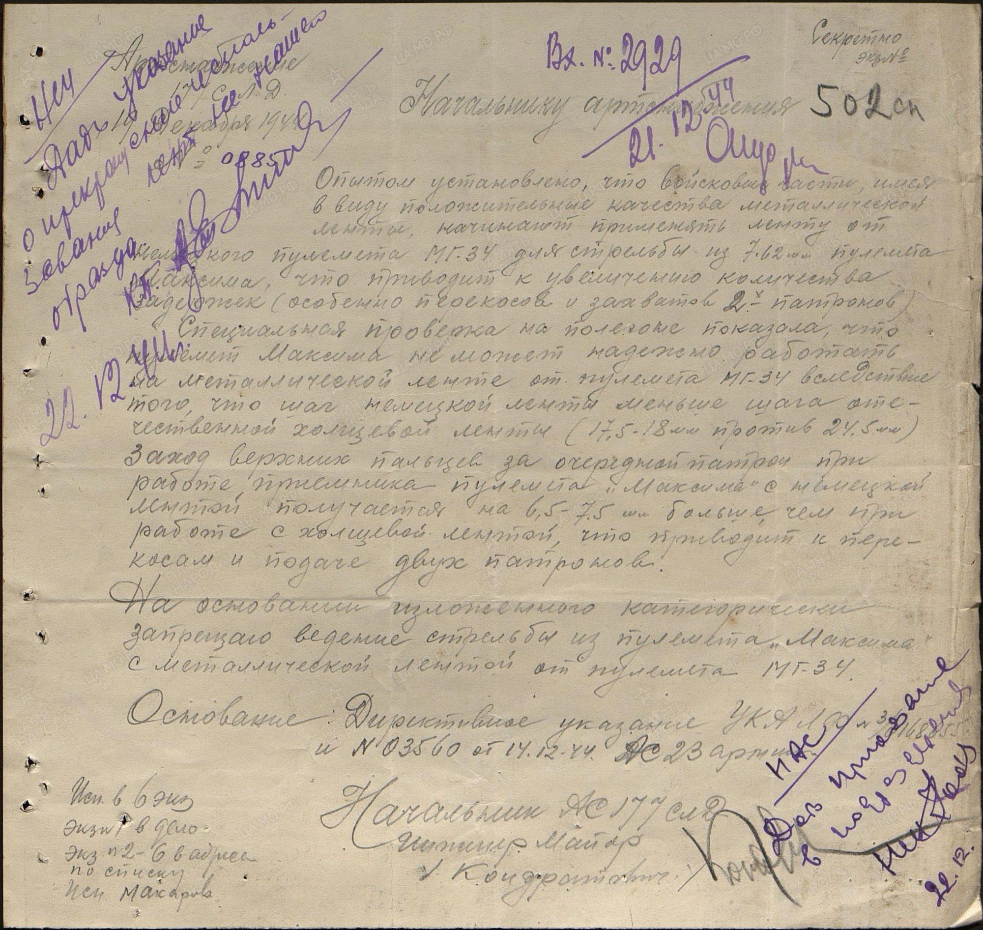 Ну прочел, давно прочел. И как способ выравнивания ленты и расположение ее в приемнике должен по вашему изменить шаг ленты и соответственно заход верхних пальцев за патрон? А металлическая лента от пулемета горюнова СГ-43, она же от дс-39, она же от ПК, в максимах использовалась после войны, когда был налажен ее массовый выпуск в достаточных объемах, благо приемник для нее был разработан еще в сороковых.