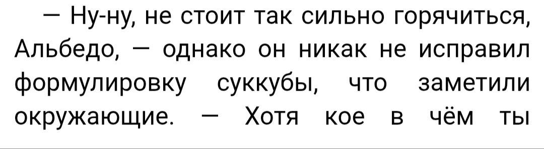 Спасибо за главу. Как я понял, уровень " сильнейшей " не смогли точно определить как раз таки из-за её высокого уровня и низкого уровня споглядателя? И да, как отреагирует Альбедо на теоретическое предложение ГГ на тройничок с Нуар?