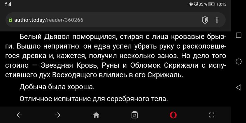 Блин, чето мало, неужели нельзя закончить было после разборки, зачем терзать читателей прерываясь посреди главы??? Можно же сделать логическое завершение отрывка!!! Бесит такое! Тоже подумываю завязывать с чтением в процессе, раз так поступаете.  Уж лучше дождаться конца книги чем каждый раз обламываться посреди самого интересного места!!!