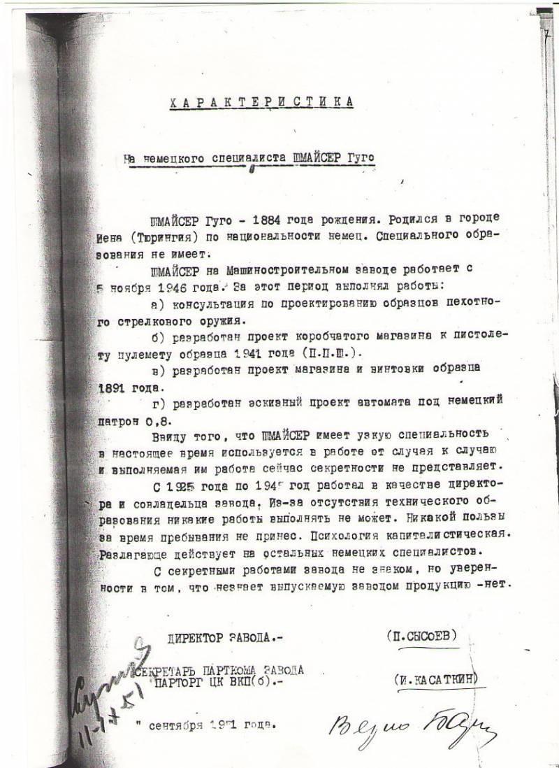 5. Тов. Шмайсер работал на Ижевском Машиностроительном заводе с 1945 по 1951 год. Вот документ.