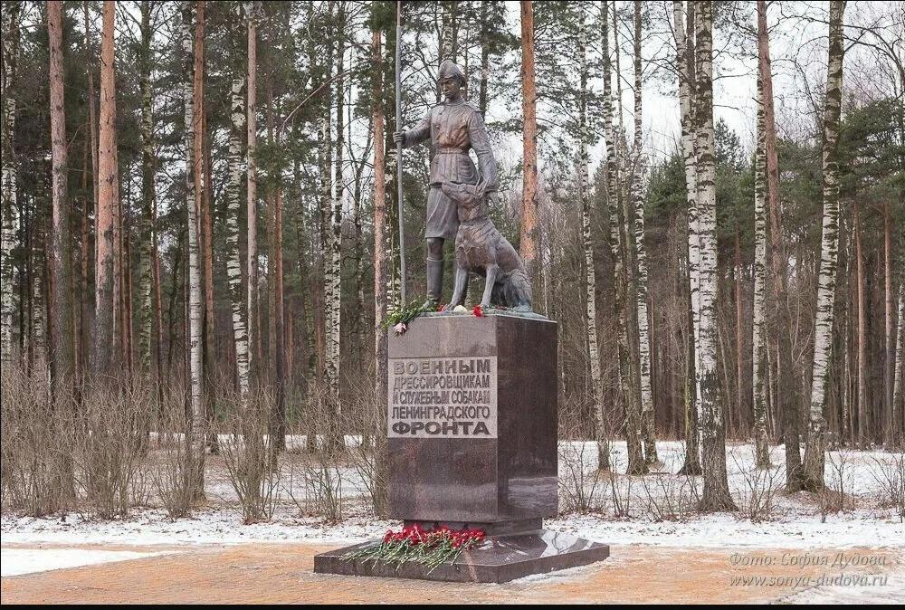 В парке Сосновка (к юго-западу от пересечения Северного и Тихорецкого проспектов), 12 мая 2017 г открыт памятник "Военным дрессировщикам и служебным собакам Ленинградского фронта".