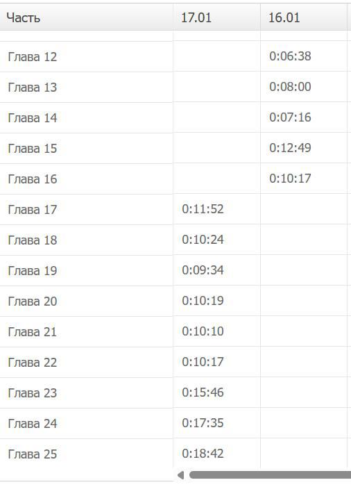 На главе с 10 просмотрами 10 минут, получается. На следующей, которая набрала 7, 15