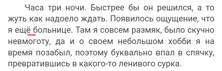 Только начал читать. Автор молодчина, книга сразу захватила, стиль построения текста немного неудобый в начале, но если вникнуть, то очень интересный, начинаешь чувствуешь эмоции повествования глубже. Но есть небольшие грешки в словах: в первой же главе бронхиальная асТма, через "т", а не "п" будет правильно.