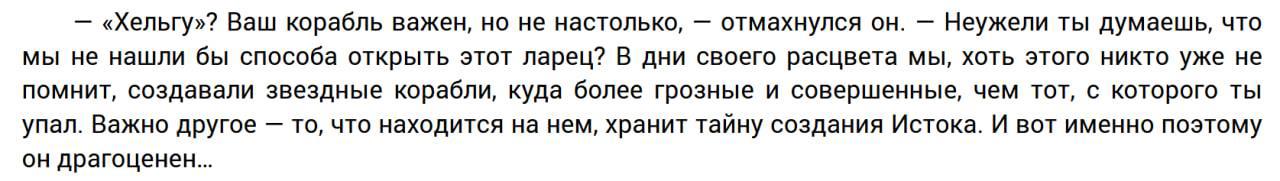 Думаю, ради такого даже может экспедицию на Хельгу организовать. Типа, надо забрать какие-то важные бумаги или Главный чип Авроры с описанием технологии. Короче, что-то без чего Исток не получается изобрести. А, как вам, правдоподобно?