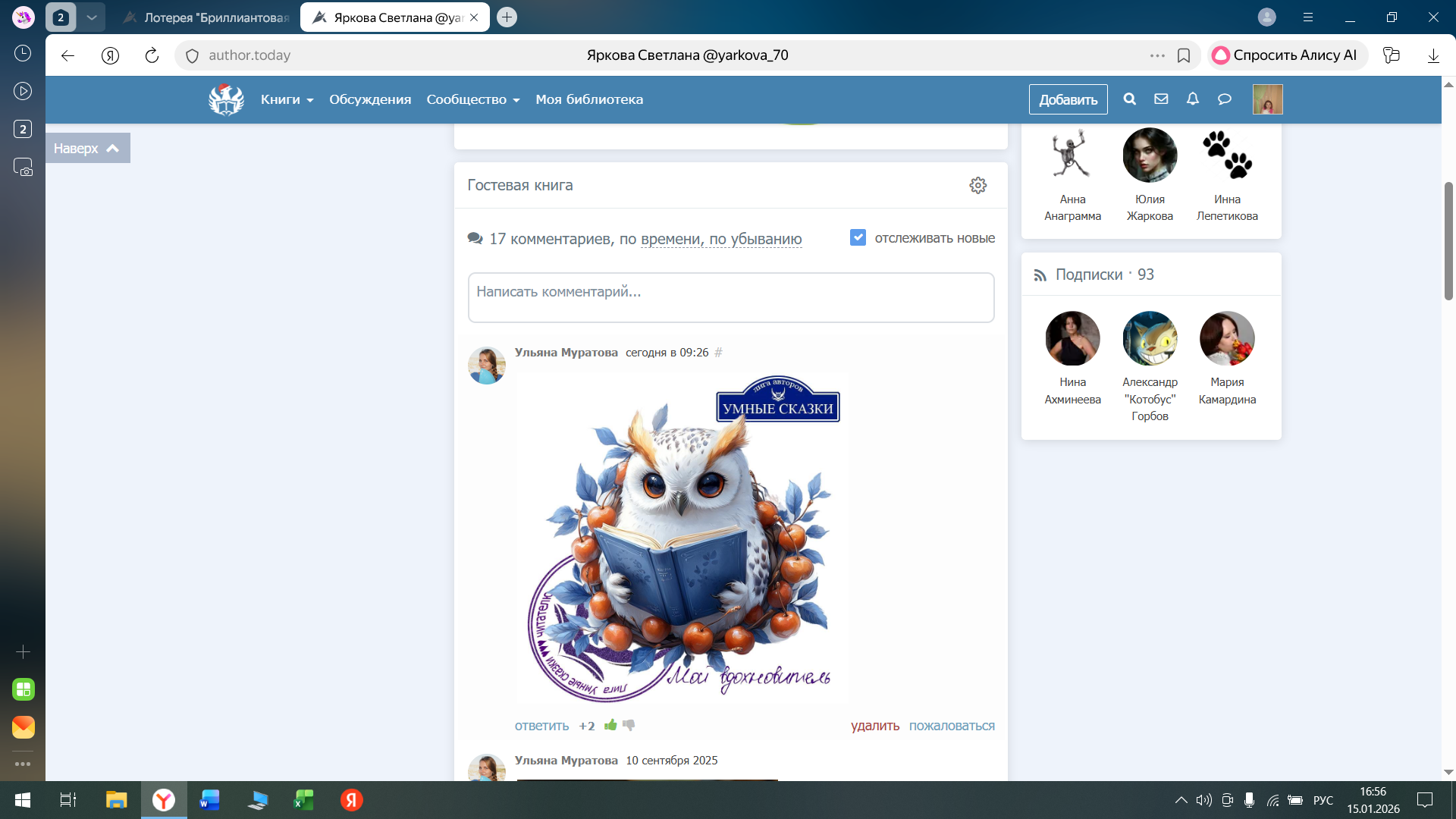 Написалa комментарий к посту Шестнадцать лет творчеству!