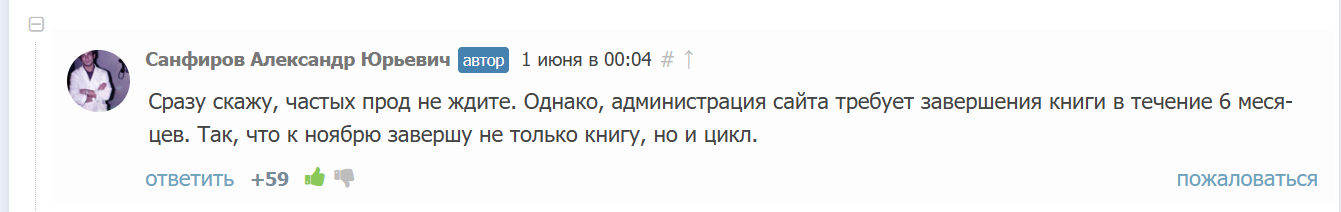 Через неделю будем полгода отмечать с 19 главы (крайняя прода от 26.05.).