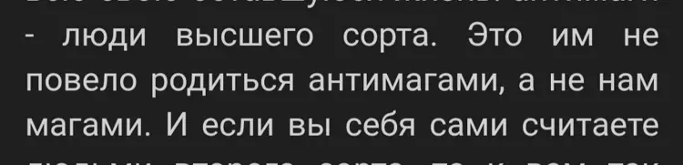 Классная книга, очепятка в 10 главе. По смыслу должно быть наоборот им не повезло родиться магами, а не нам антимагами. Ну и повезло, а не повело