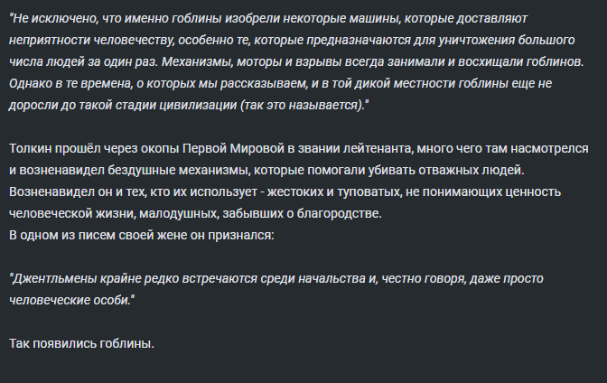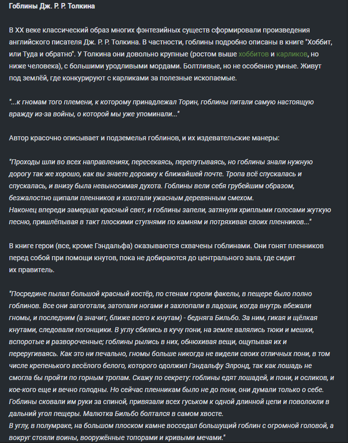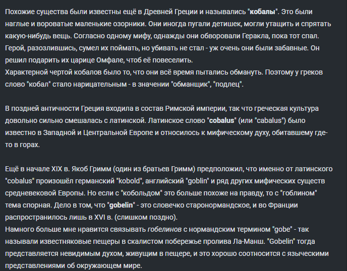 Окей... Было в падлу, на работе был... Давай поставим под сомнение само существование гоблинов их суть жизни по сути, тем более в подземельях.... Не ну а хули ебать мозг... Мы же блять люди цивилизованные давай те разьёбывать эволюцией животных....