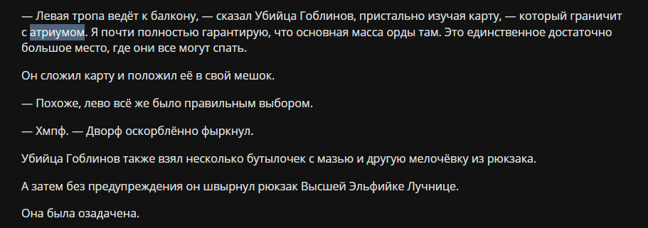 Приятно перепросмотра аниме мой дорогой друг) Ах да... 1 сезон 4 серия, Убийца гоблинов, логово собственно гоблинов... В этом атриуме были и более тёмные места для сна, но они буквально спали под солнцем... Да, можно сказать, что аниме адаптация такой вышла и в ранобе всё намного лучше... Ммм... Да лучше...