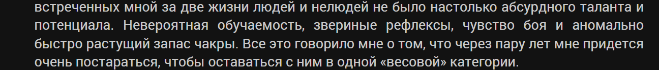 Слог, стиль и даже сама героиня мне очень понравились, как и методология развития в мире хантеров. Но вот мироходность и вообще всё с ней связанное, на мой взгляд, максимально лишние. С огромным удовольствием прочитал бы новое творение автора, где ГГ переродилась бы, допустим, девочкой Золдиков - Аллукой, пусть и со способностью к управлению пространством и его восприятием на том уровне, на котором оно у ГГ в конце. Но без этой ерундистики с мироходством. Было бы гораздо интереснее, разумеется, для меня.