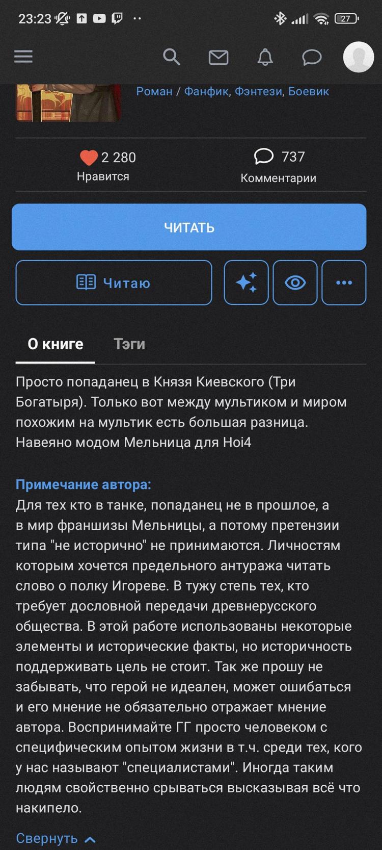Для ленивых : Это Фанфик по Серии мультфильмов: "3 богатыря" от Мельници , Но с добавлением элементов из игры в жанре ГЛОБАЛЬНАЯ стратегия , сфокусированная на Второй мировой войне , с добавлением мода Мельница .Все тоже самое есть и в описании этой книги