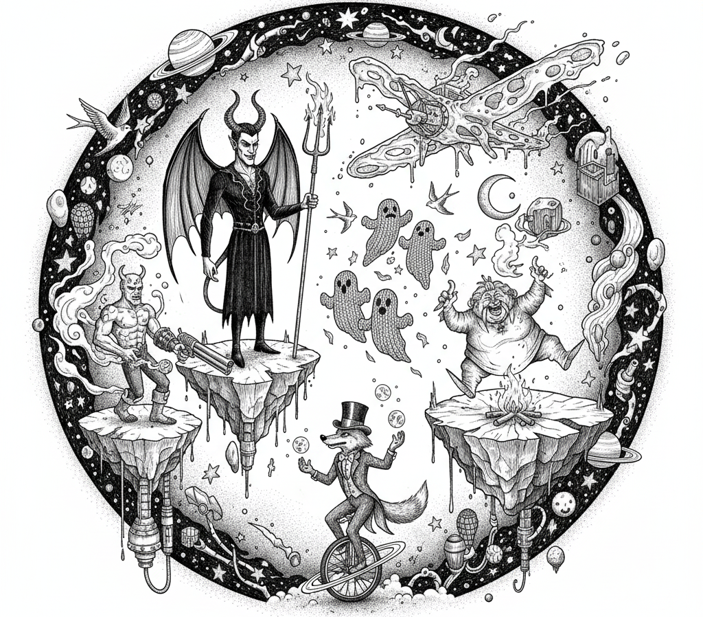 Здесь вы встретите Серкулеса и Плюмблдора; крота-инженера; Пенаккино и Фрешди Фюргера, хранящего свои секреты в ящиках; летучую мышь — путешественника по вселенным; паука, ищущего дом в космосе; носки-людоеды; пони — пожирателей нечисти; китов-волшебников; гномов-великанов; табуреток-физиков и многое прочее. Киборги и телепорты, атомы-вампиры, тень-подражатель, червяк — скоростной поезд… Эта книга — отдых, придумки, да выдумки, являющиеся воистину уникальными и прекрасными. Не веришь? Проверь!