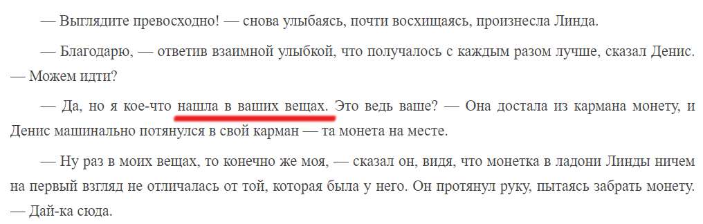 я вот тоже не догнал и перечитывал из за это-го и снова не догнал. чел передал гг одну монету откуда вторая взялась и тем более у этой служанки . когда гг увидел вторую я подумал что он захапал вторую чужую похожую. а выходит это т правда его монета. тогда снова вопрос если ему передали одну монету то почему вторая тоже его если у него ее не было. а тут еще разговор в машине о трех рангах да и странный разговор служанки с братом главы о второй монете с предположительным выводом раз вторая монета а уже неважна значит что может и третья появится в закромах заговорщиков и еще более путает нас .но это все домыслы книга расскажет а вот вторая откуда взялась для начала я не понял . ну еще и подбешивает это монеты нельзя потерять и носи их всегда с собой и места хранения тумбочка и под подушкой. бред . так почему гг не повесит их на шею . не хватило времени? а вино купить успел а медальен купить или мешочек на шею с монетками купить негде в городе было ? одни винные магазы и ни одного ювелирного в которых мешочки дешевле 200 баксов не найти. ну бред же