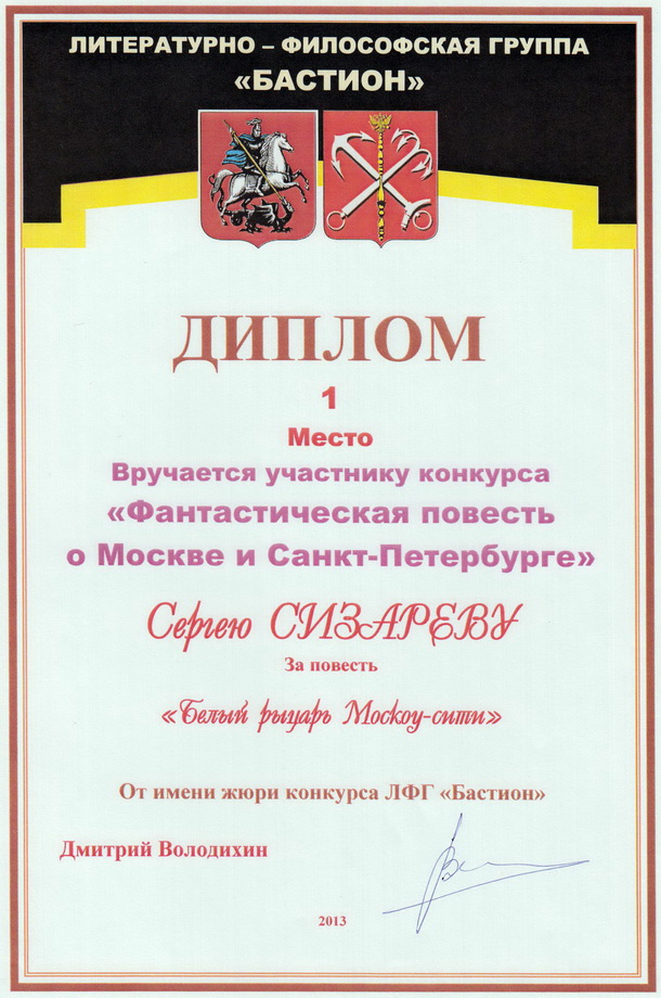 Повесть заняла первое место в конкурсе фантастических произведений о Москве и Санкт-Петербурге конвента «Басткон-2013» и была напечатана в итоговом сборнике «Два сердца».