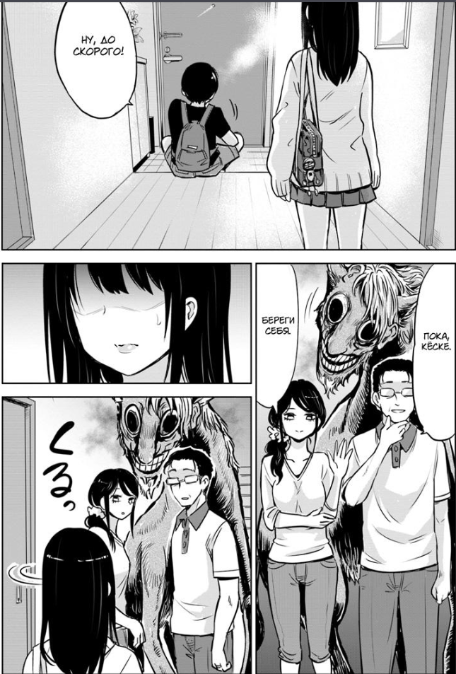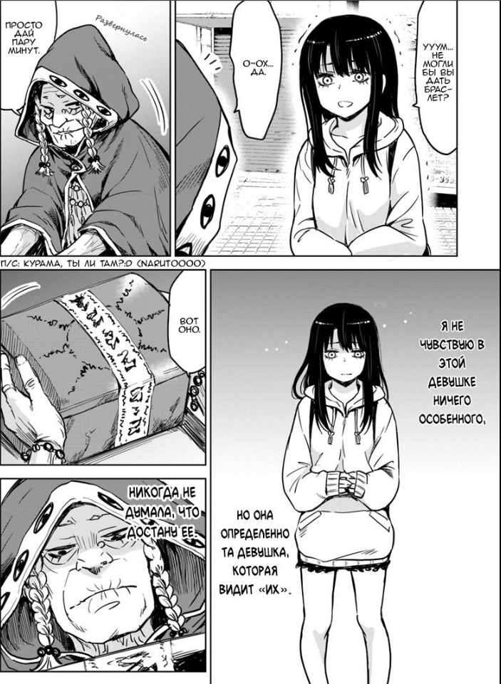 Короткая история по манге\аниме: Девочка, которая видит это Mieruko-chan. Поэтому в тексте будут некоторые вставки из манги.