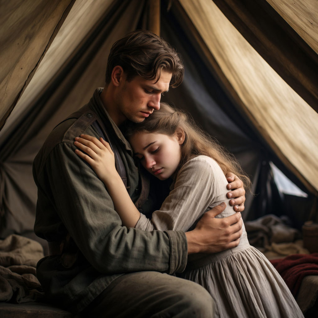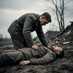 • лирическую завязку (юноша рисует возлюбленную на статуе льва накануне войны);