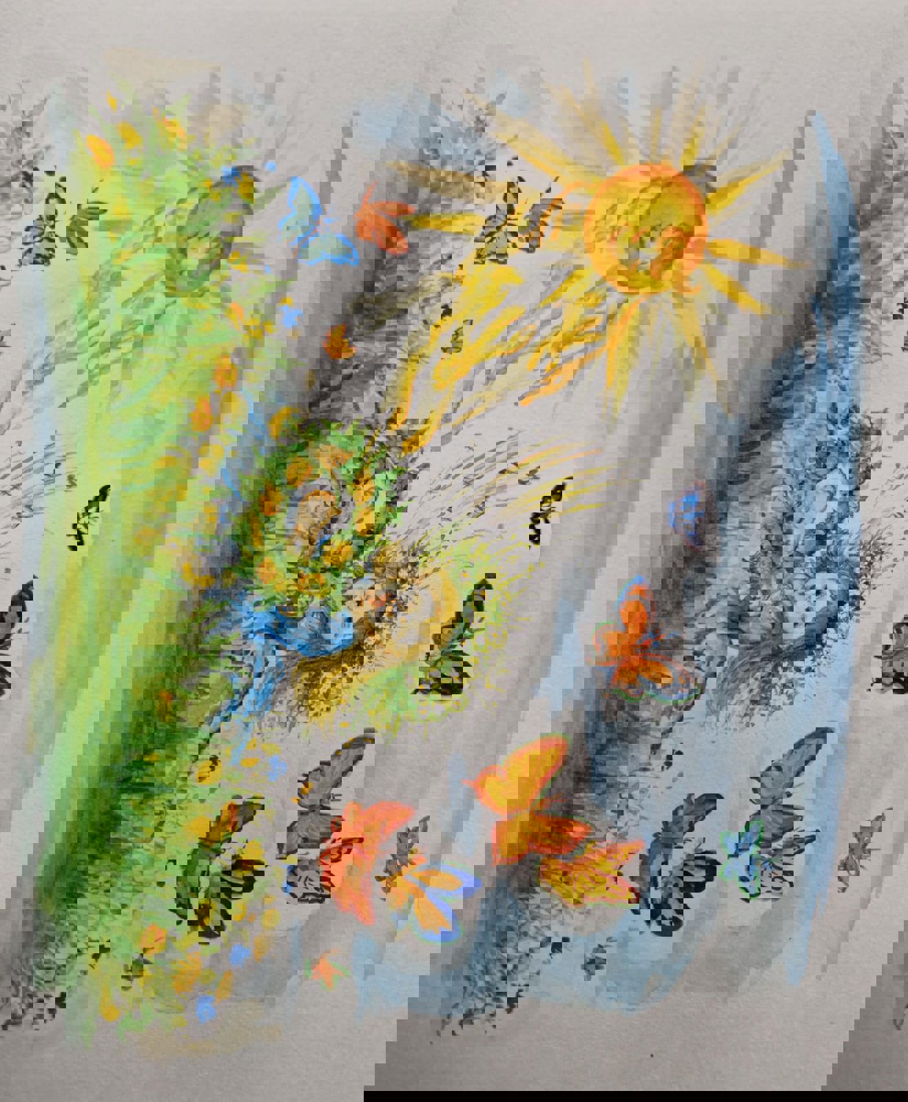 Небольшой поэтический этюд рисует перед нами идиллическую картину летнего дня, увиденную глазами ребенка.